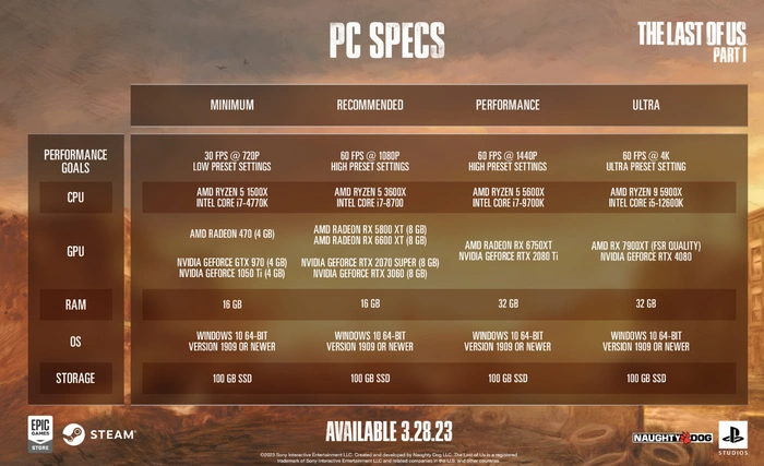 Jonathon Dornbush, do desenvolvedor de jogos Naughty Dog, acessou o blog oficial do PlayStation esta semana para revelar mais detalhes sobre as especificações e recursos do PC que serão incluídos na porta do jogo do PlayStation dois para PC. The Last of Us Part I estará oficialmente disponível para jogar no PC a partir de 28 de março de 2023 e está atualmente disponível para pré-encomenda via Steam.
