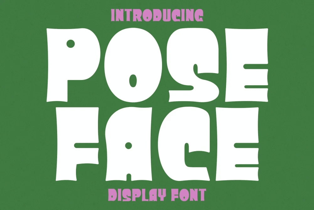 Poseface é uma fonte de exibição sem serifa com traços pesados ​​e personagens divertidos. Essa fonte estilosa permite que você adicione uma aparência criativa extra aos seus designs. Ele oferece suporte a mais de 100 idiomas, permitindo que você o use em vários designs.