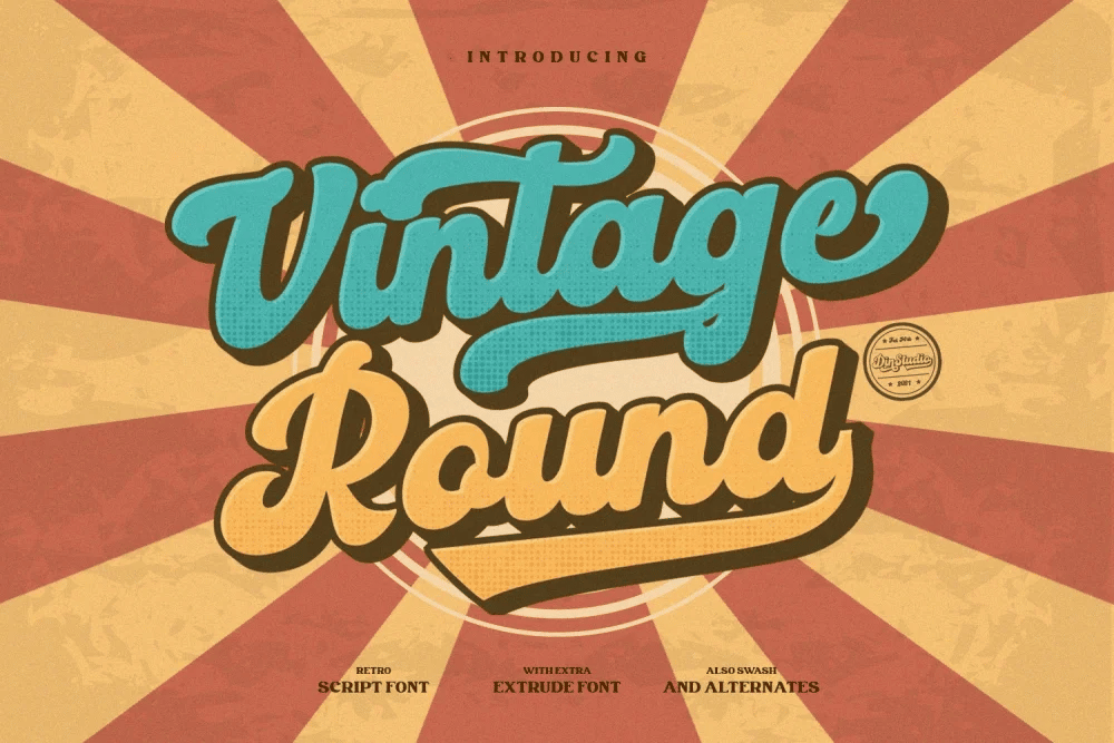 Você está procurando uma fonte gorda com um toque retrô? Vintage Round é uma fonte retrô com caracteres grossos e angulares. Quando você precisa de uma fonte para designs clássicos e trazer alegria ao seu trabalho artístico, considere essa fonte. É adequado para uma ampla gama de necessidades de projetos devido à sua aparência versátil.