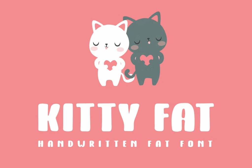 Kitty Fat é um novo fonte gorda com um design manuscrito. Suas letras em negrito são fofas e adequadas para temas infantis e projetos de desenhos animados. Este arquivo de fonte inclui letras maiúsculas e minúsculas, números, pontuações e caracteres multilíngues para uma usabilidade perfeita. As letras suaves desta fonte são perfeitas para vários conceitos de design.