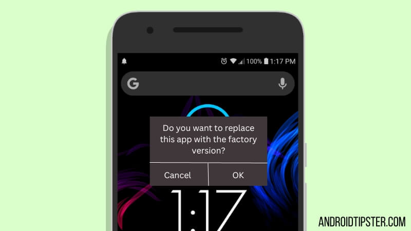 No entanto, se você estiver usando versões mais antigas do Android, talvez esteja com sorte. Nesse caso, simplesmente tente desinstalar o aplicativo específico. E você verá que diz para substituí-lo pela versão de fábrica. Portanto, confirme isso e você verá que a versão de fábrica foi reinstalada.