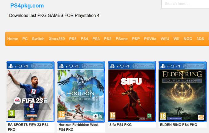 Um site recomendado para obter jogos de PlayStation 4 é o PS4PKG e é um site muito popular porque não oferece apenas jogos de PS4. PS4PKG tem mais de 2 milhões de jogos em diferentes plataformas, você pode baixar qualquer jogo de Nintendo DS, PC e jogos de console.