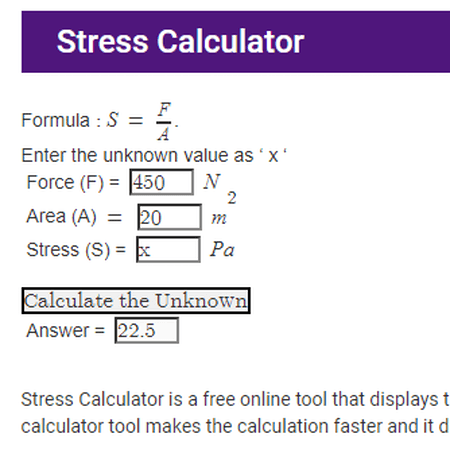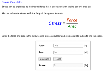 É outro site simples de calculadora de estresse online que também explica o processo de cálculo de estresse.