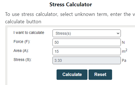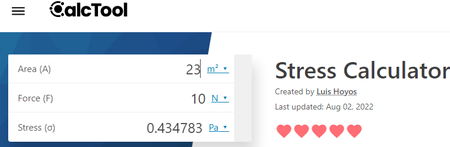 É outro site simples de calculadora de estresse online que também pode calcular valores de Força e Área.