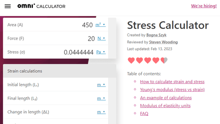 É outro site de calculadora de estresse on-line capaz que também pode ser usado para calcular a Deformação e o Módulo de Young.