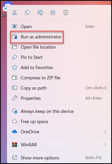 Primeiro, você precisa abrir a tarefa Manager e finalize todas as tarefas relacionadas ao Discord, conforme mostrado no método anterior. Em seguida, clique com o botão direito do mouse no ícone do Discord na área de trabalho e escolha Executar como administrador.