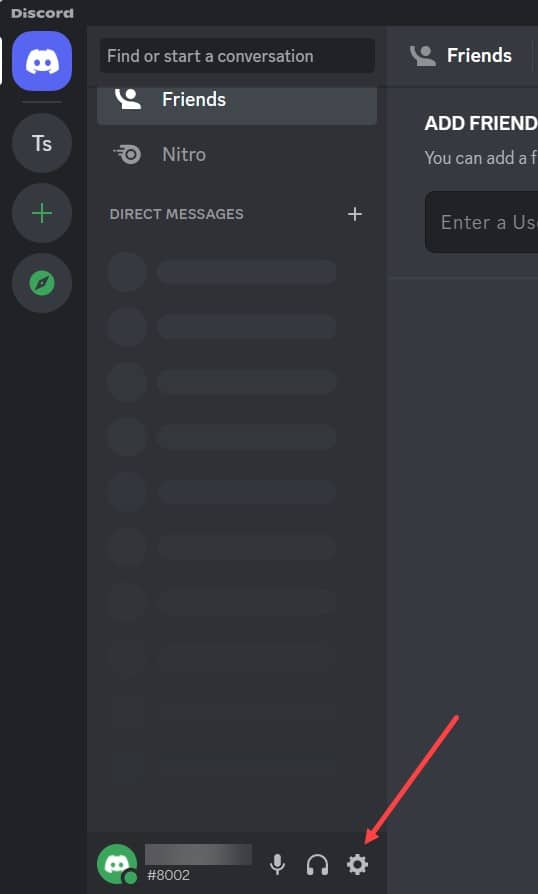 Inicie o aplicativo Discord e clique no ícone Configurações do usuário.