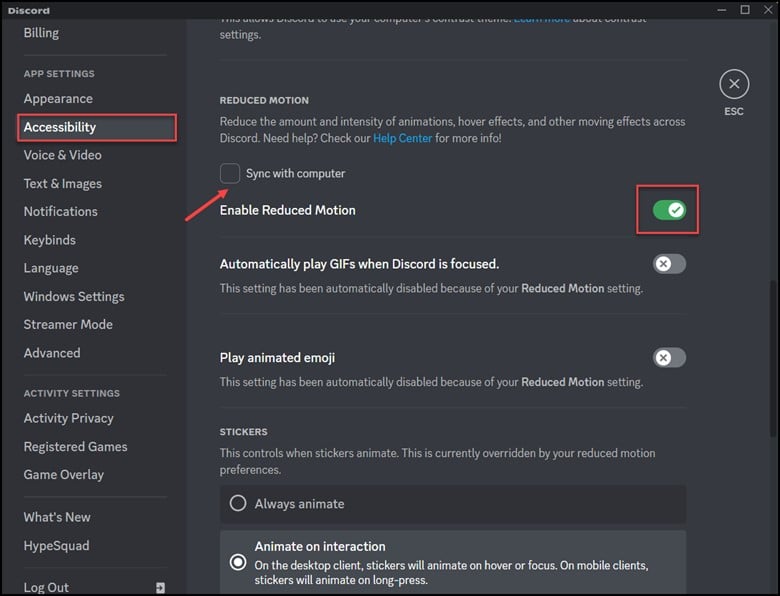 Ativar a opção de movimento reduzido tornará o Discord mais suave.