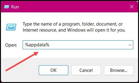 Abra o Executar caixa de diálogo e digite %appdata% e clique em OK.