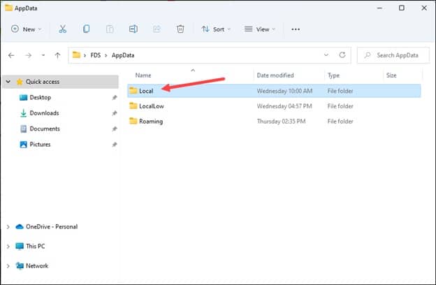 Clique em AppData na top e abra a pasta Local.