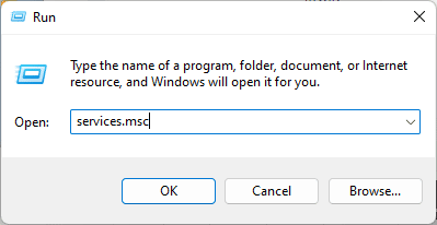 Pressione Windows + R para iniciar o utilitário Executar. Digite services.msc na caixa de comando Executar e pressione Enter.