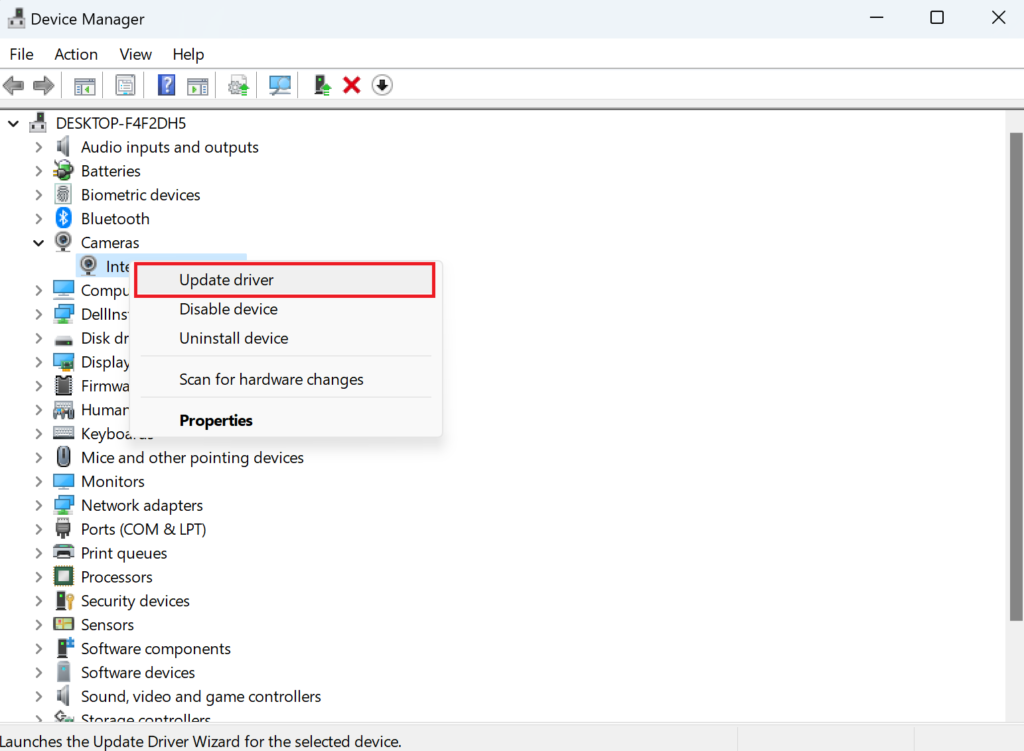 Para lidar com o problema em questão, você pode reinstalar ou atualizar os drivers da câmera para a versão mais recente e ver se funciona. Siga as etapas abaixo para fazer isso: