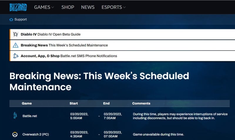 Diablo 4 é um jogo recém-lançado e, a cada dia, mais e mais jogadores estão instalando o jogo em seus dispositivos. Esse aumento maciço de usuários de jogos definitivamente prejudicou os servidores de jogos. Enquanto os desenvolvedores estão trabalhando duro para garantir que todos os servidores do jogo estejam funcionando, pode haver instâncias de servidores lentos ou inativos. Portanto, acesse a página oficial do Diablo 4 Server e verifique se o servidor está funcionando. Se o servidor estiver inoperante, você obviamente não conseguirá fazer login no servidor.
