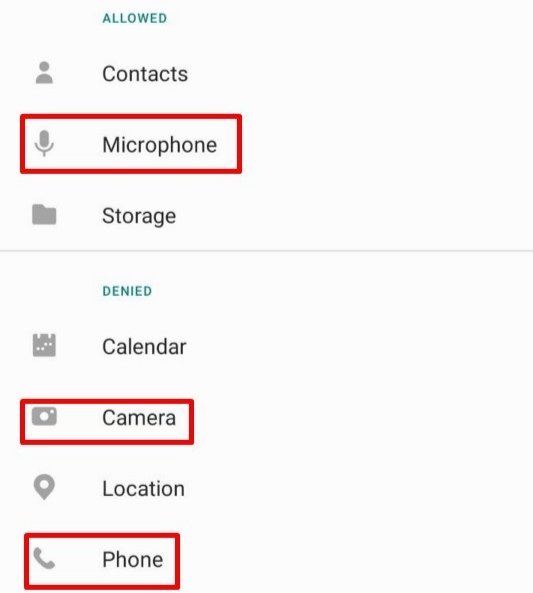5. Finalmente, volte para Telefone conforme indicado na imagem acima para desabilitar a permissão para o telefone. Toque em Telefone. Isso abrirá as permissões do aplicativo para o telefone. Desative a permissão e defina-a como “Negar.”