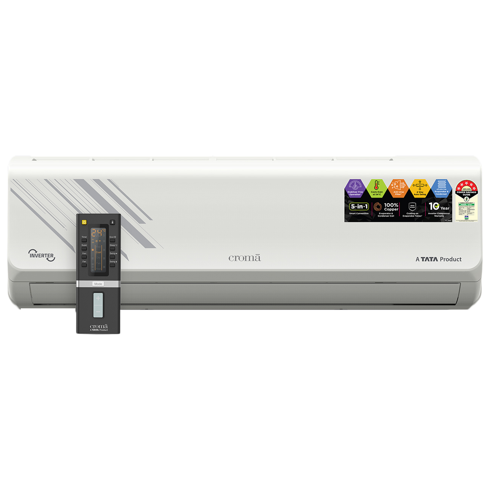 Croma 5 em 1 Conversível 1,5 Ton 5 Star Dual Inverter Split AC com filtro PM 2.5 (modelo 2022, condensador de cobre, CRLA018INF255305)