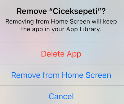 Desinstalar do dispositivo. Removendo da tela inicial – para ser mantido na App Library.