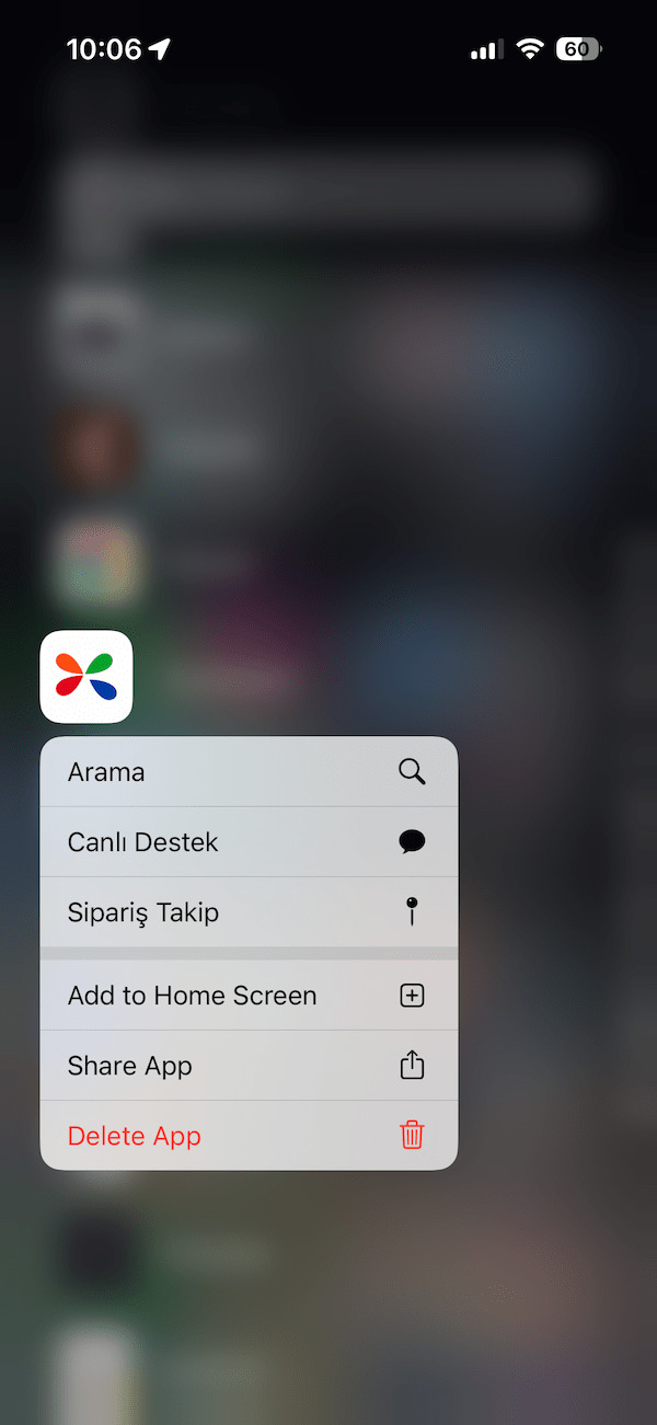 Ao tocar e segurar um aplicativo, um pop-up aparecerá com a opção Remover aplicativo. Depois de tocar em Remover aplicativo, você verá estas opções: Excluir aplicativo Remover da tela inicial Cancelar