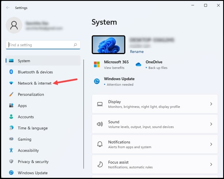 Abra Configurações e clique em Rede e Internet opção forte>.