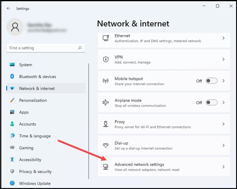 Ir para Configurações de rede avançadas.