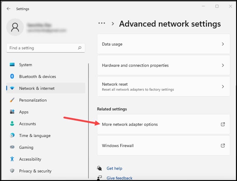 Em seguida, clique em Mais adaptadores de rede.