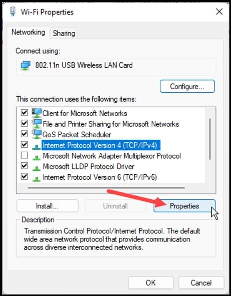Selecione Internet Protocol Version 4 [TCP/IPv4] e abra suas Propriedades.