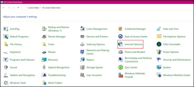 Primeiro, digite Painel de Controle na barra de pesquisa e selecione a opção superior. Procure por Opções da Internet e clique nela.