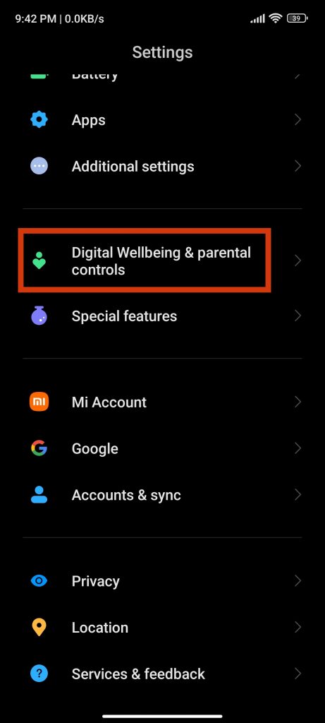 Em seguida, vá para a seção “Bem-estar digital e controle dos pais”.