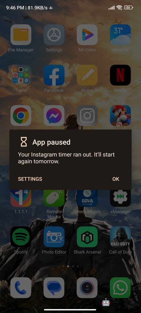 Quando você tiver esse limite quando tiver usado esse aplicativo pelo tempo indicado. Uma hora, por exemplo, você receberá uma notificação informando que atingiu o tempo de uso diário. Sempre que quiser, você pode ajustar esse limite de tempo, caso queira estendê-lo ou reduzi-lo.
