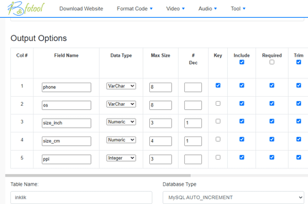 Como converter CSV para SQL online usando bfotool.com: