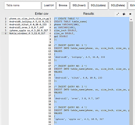 É outro serviço on-line conversor CSV para SQL simples e eficaz que pode converter CSV para três formatos SQL diferentes.