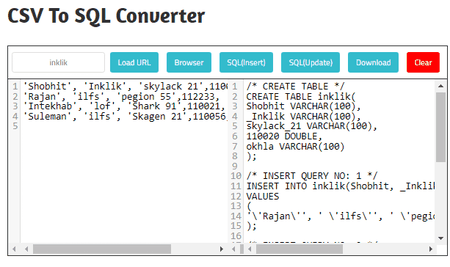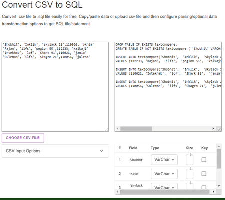 É outro serviço de conversão on-line CSV para SQL simples, mas muito capaz, que qualquer pessoa pode usar sem muita dificuldade.