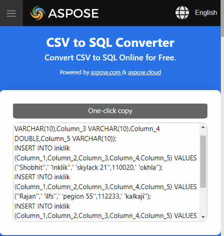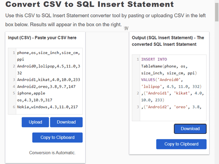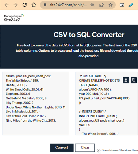 É outro bom CSV para SQL serviço online conversor que pode converter rapidamente dados CSV em dados formatados SQL.