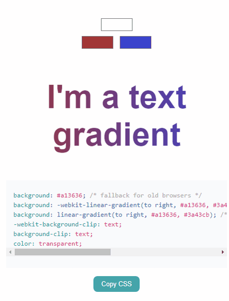É um dos sites geradores de gradiente de texto CSS mais simples que qualquer um pode usar para gerar rapidamente gradientes de texto consistindo em duas cores.