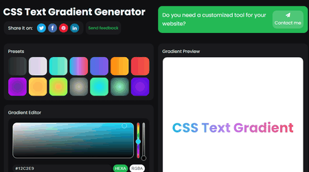 É outro bom site gerador de código de gradiente de texto CSS on-line, através do qual os usuários podem criar belos visuais de gradiente de texto CSS e gerar o código CSS.