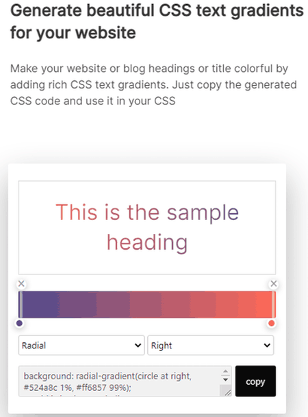 É outro site gerador de gradiente de texto CSS online capaz que qualquer pessoa pode usar sem muita dificuldade.