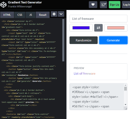 É outro bom gerador de gradiente de texto CSS online através do qual os usuários podem personalizar a aparência do texto e títulos aplicando efeitos de gradiente sobre eles.
