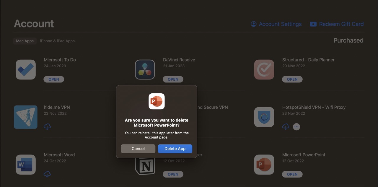 Una ventana emergente le pedirá que confirme si desea eliminar la aplicación que ha elegido. Haga clic en Eliminar aplicación nuevamente.