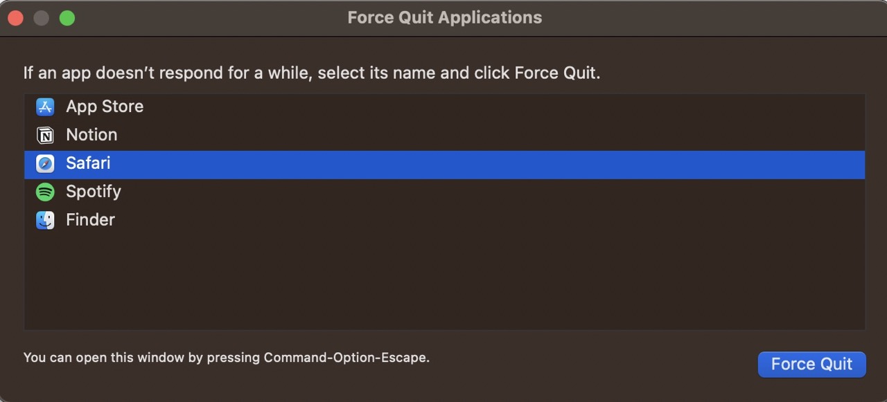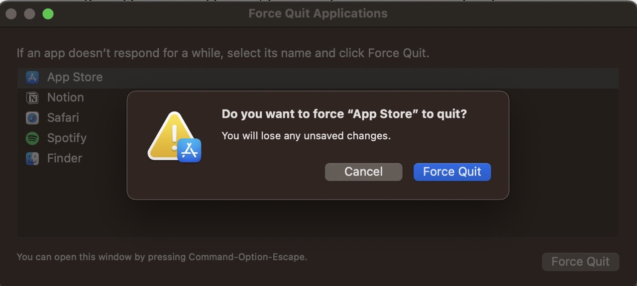 4. Haz clic en Forzar salida para cerrar la aplicación.
