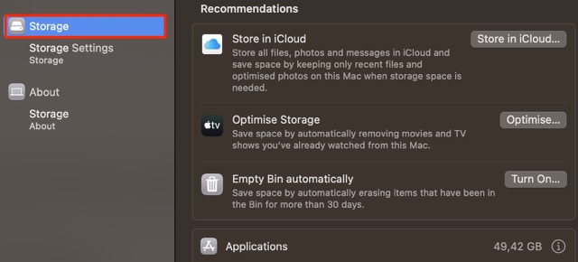 Otra forma de eliminar una aplicación eliminada que todavía aparece en tu Mac es usar la sección Almacenamiento en tu dispositivo.