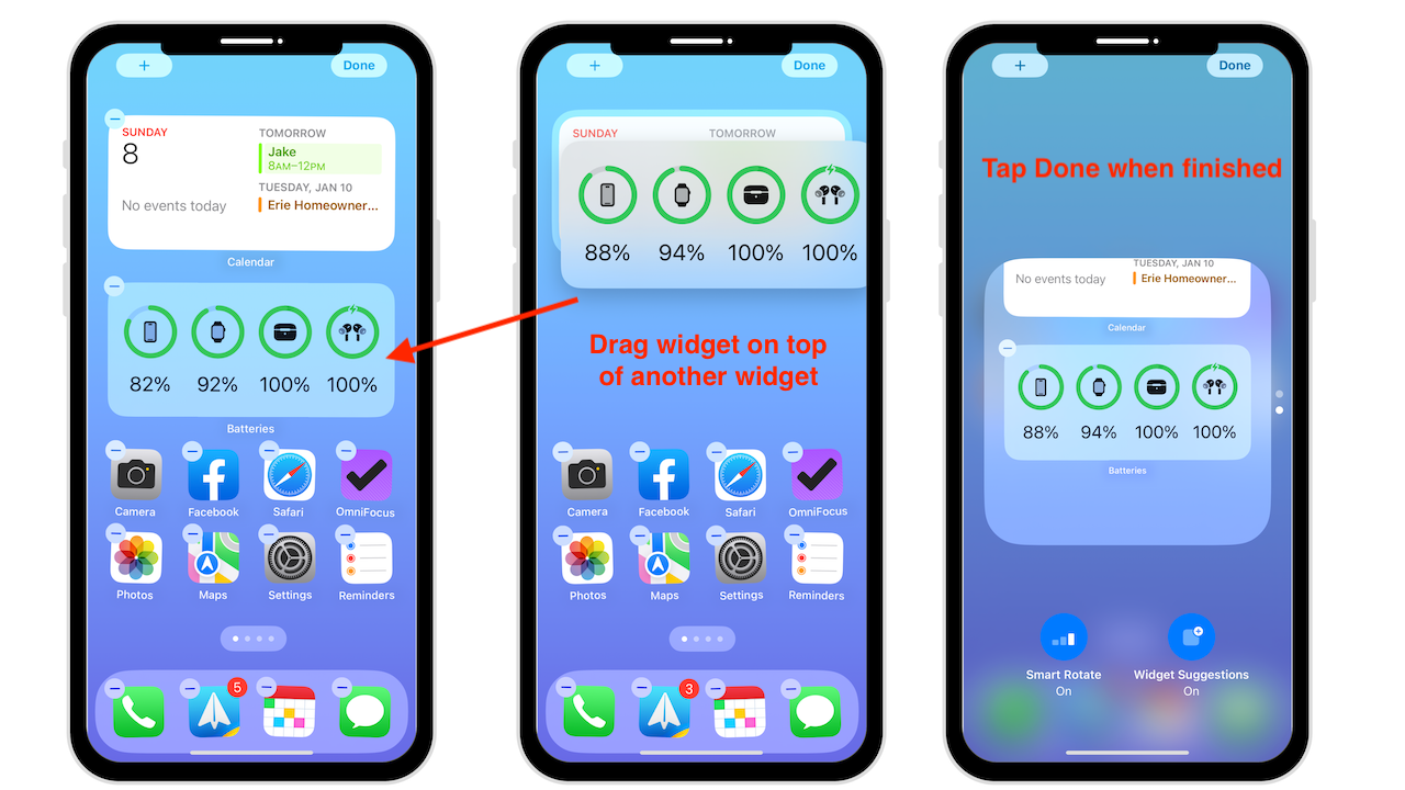 Una vez que el widget esté en su pantalla de inicio, realice el mismo proceso anterior y agregue algunos widgets más; presione y sostenga el widget y suéltelo encima de otro widget.