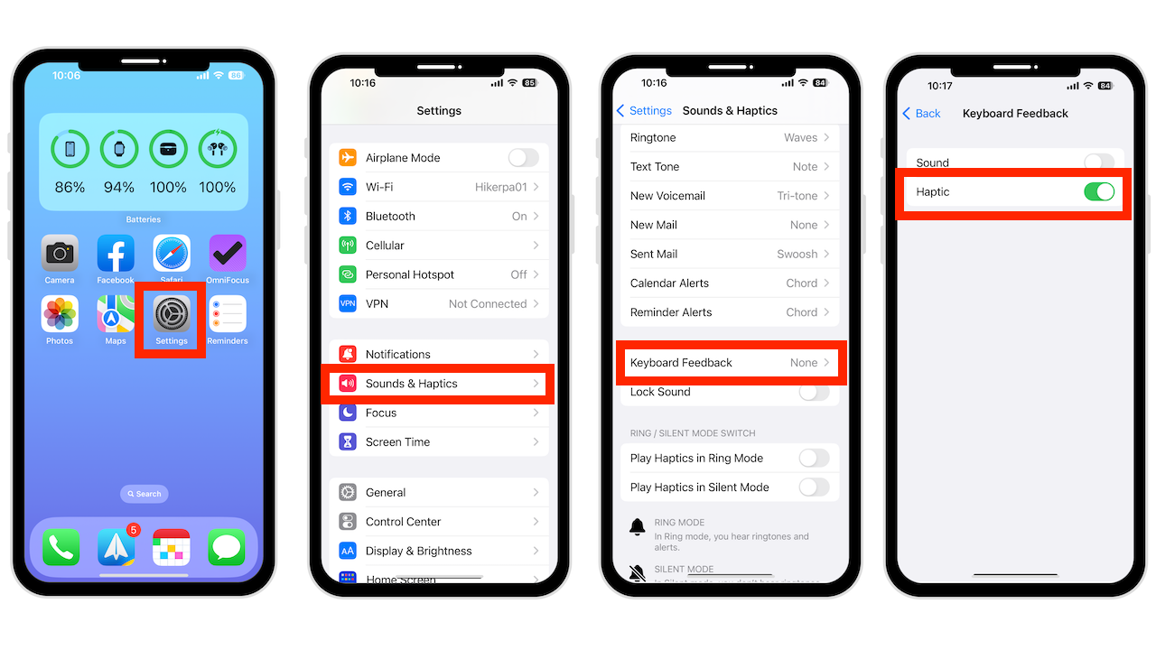 Esta nueva función añade una ligera vibración debajo de los dedos mientras escribe. Puede ayudarlo a cometer menos errores y eliminar ese terrible clic. Para activarlo: