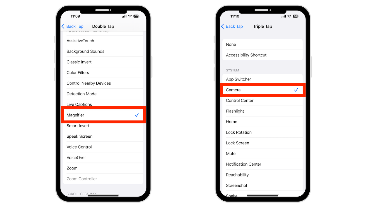 Puede usar el toque doble o triple para abrir la lupa, la cámara o cualquier cosa de la lista. Adelante, pruébalo. Back Tap funciona en el iPhone X y posteriores.