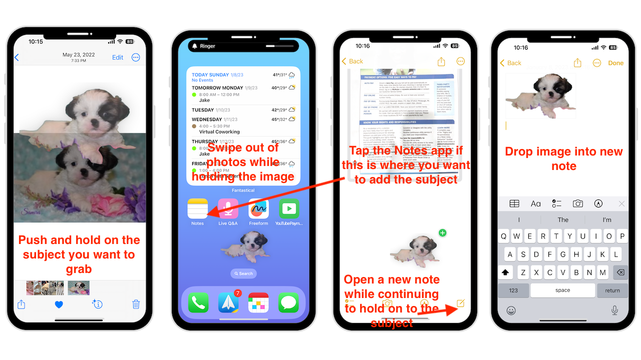 En iOS 16, Apple facilitó sacar un sujeto de una foto y soltarlo en otra aplicación sin tener que abrir Photoshop. En su lugar, toque y mantenga presionado el tema y luego arrástrelo a la aplicación a la que desea aplicarlo. Por supuesto, esto funciona en la web, aunque verá aparecer el menú emergente y elegirá copiar y pegar el asunto.