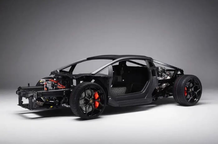 Ahora Lamborghini ha revelado que el nuevo LB744 será el primero deportivo con estructura frontal 100% Forged Composites, y un concepto monocasco fabricado íntegramente en fibra de carbono.