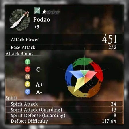 Aumento de HP. Aumenta la defensa espiritual. La afinidad con la Tierra aumenta. Disminución del peso total del equipo. La resistencia al agua aumenta a medida que disminuye la resistencia de la madera.