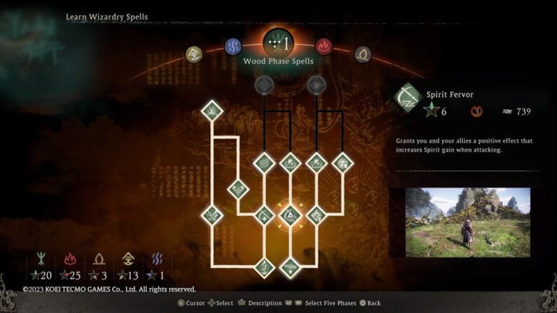 Entre las cinco estadísticas de Wo Long Fallen Dynasty, Wood Phase te proporcionará con un mayor impulso en la salud que cualquier otra estadística. Las otras estadísticas proporcionan un impulso de salud, pero no como un nivel de Wood Phase. Esto también aumenta tus estadísticas principales, lo cual es bastante bueno mientras luchas contra un enemigo.
