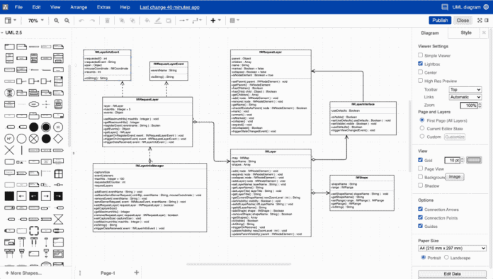 Comenzando con la lista, se encuentra un excelente software de creación de diagramas llamado Lucidchart. Podría decirse que es el mejor después de Microsoft Visio y eso se debe a que hace que el trabajo sea muy fácil. Hacer el trabajo con Lucidchart no es algo para debatir, es una herramienta basada en la nube. Se puede hacer una copia de seguridad de tus proyectos fácilmente y mantenerlos seguros.