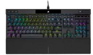 Le Corsair K70 RGB MK.2 est construit mieux que n’importe quoi d’autre sur le marché. Il a également l’air bien, grâce aux options d’éclairage RVB par touche. Le clavier possède également des fonctionnalités utiles qui le rendent à la fois utile et soigné. Il dispose d’un passthrough USB et d’un tunnel d’acheminement des câbles sous la carte, ce qui vous permet de garder votre bureau bien rangé. Il dispose également de touches multimédias qui vous donnent plus de contrôle en un seul endroit afin que vous puissiez rapidement changer le volume ou sauter une chanson sans arrêter votre jeu.