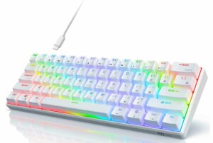 Le clavier mécanique RK61 est notre préféré car il a tout ce que nous recherchons dans un clavier de jeu haut de gamme. Le cadre blanc élégant a fière allure dans une pièce moderne et le rétroéclairage bleu peut être réglé sur un certain nombre de niveaux et de couleurs différents. C’est l’un des meilleurs claviers RVB que vous puissiez envisager