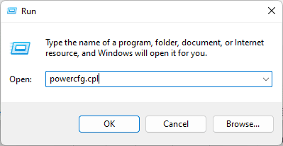 Ouvrez la boîte de commande Exécuter. Tapez powercfg.cpl dans la zone de commande et appuyez sur Entrée.